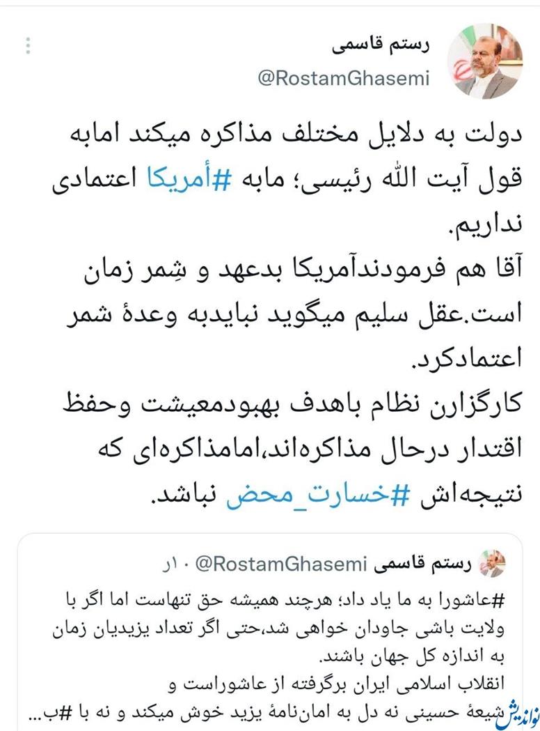 تلاش رستم قاسمى براى اصلاح موضع ضدبرجامى اش به یك اعتراف ختم شد؛ مذاكره براى بهبود معیشت مردم است!