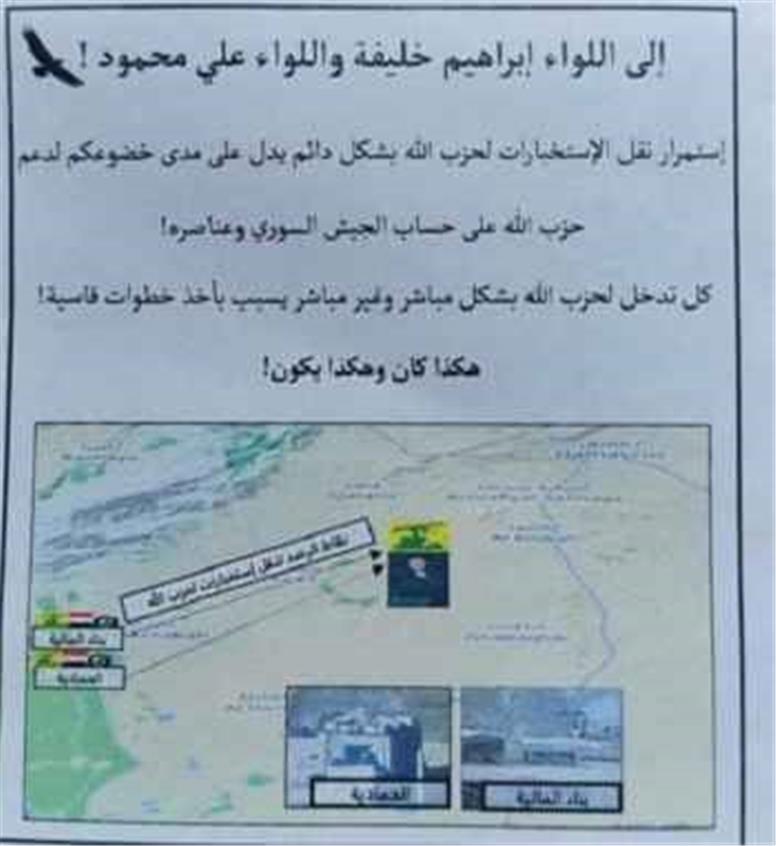 نیروی هوایی ارتش رژیم صهیونیستی با پخش اعلامیههایی بر فراز قنیطره، به ارتش سوریه در خصوص همکاری با حزبالله هشدار داد.