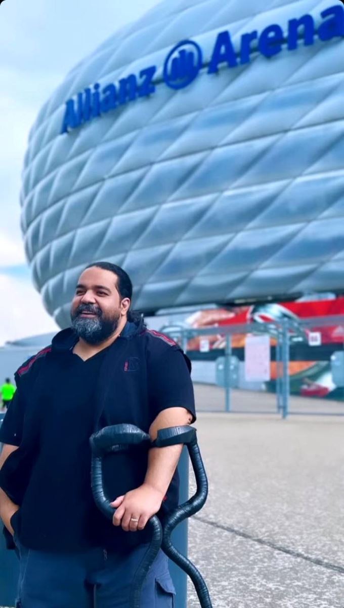 او در زمان گشت و گذار در مونیخ عکسی یادگاری هم با ورزشگاه خانگی بایرن مونیخ یعنی آلیانز آرنا گرفت.