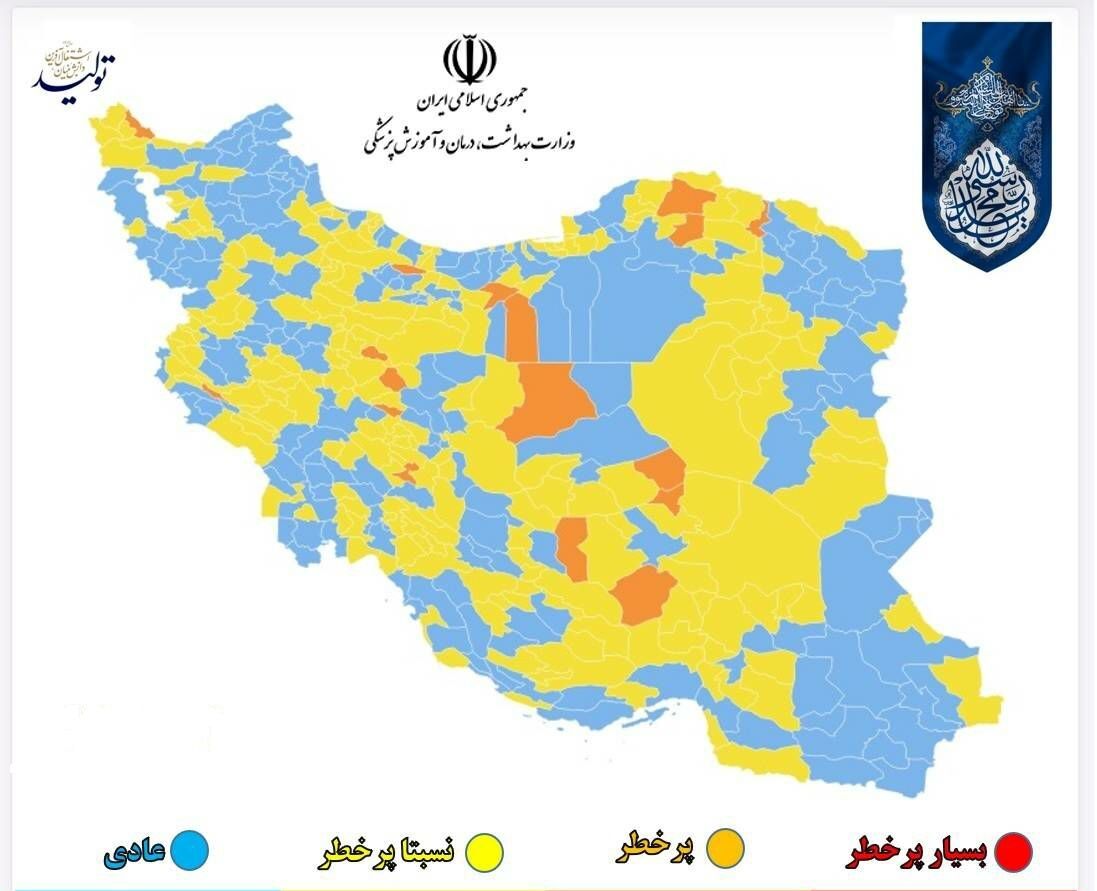 وی افزود: بر طبق آخرین نقشه کرونایی کشور، تعداد صفر شهرستان در وضعیت قرمز (بسیار پرخطر)، ۱۶ شهرستان وضعیت نارنجی (پر خطر)، ۲۰۰ شهرستان وضعیت زرد (نسبتا پرخطر) و ۲۳۲ شهرستان نیز در وضعیت آبی (عادی) قرار گرفتهاند.