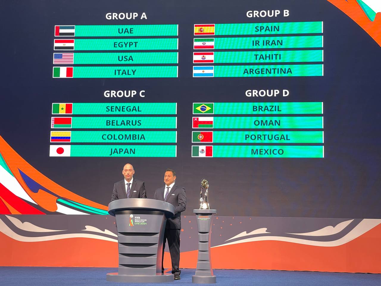 بدین ترتیب، تیم ملی فوتبال ساحلی ایران در گروه B با تیمهای اسپانیا، تاهیتی و آرژانتین مصاف خواهد داد.