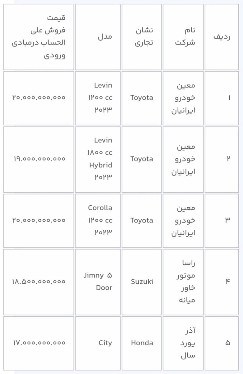 ب- خودروهای دارای قیمت علیالحساب در مبادی ورودی: