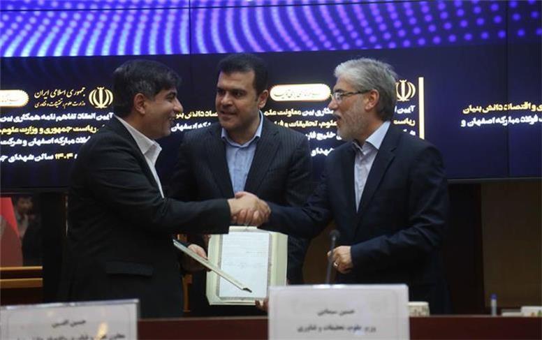 انعقاد تفاهم‌نامه همكاری سه‌جانبه بین وزارت علوم، معاونت علمی ریاست جمهوری و گروه فولاد مباركه