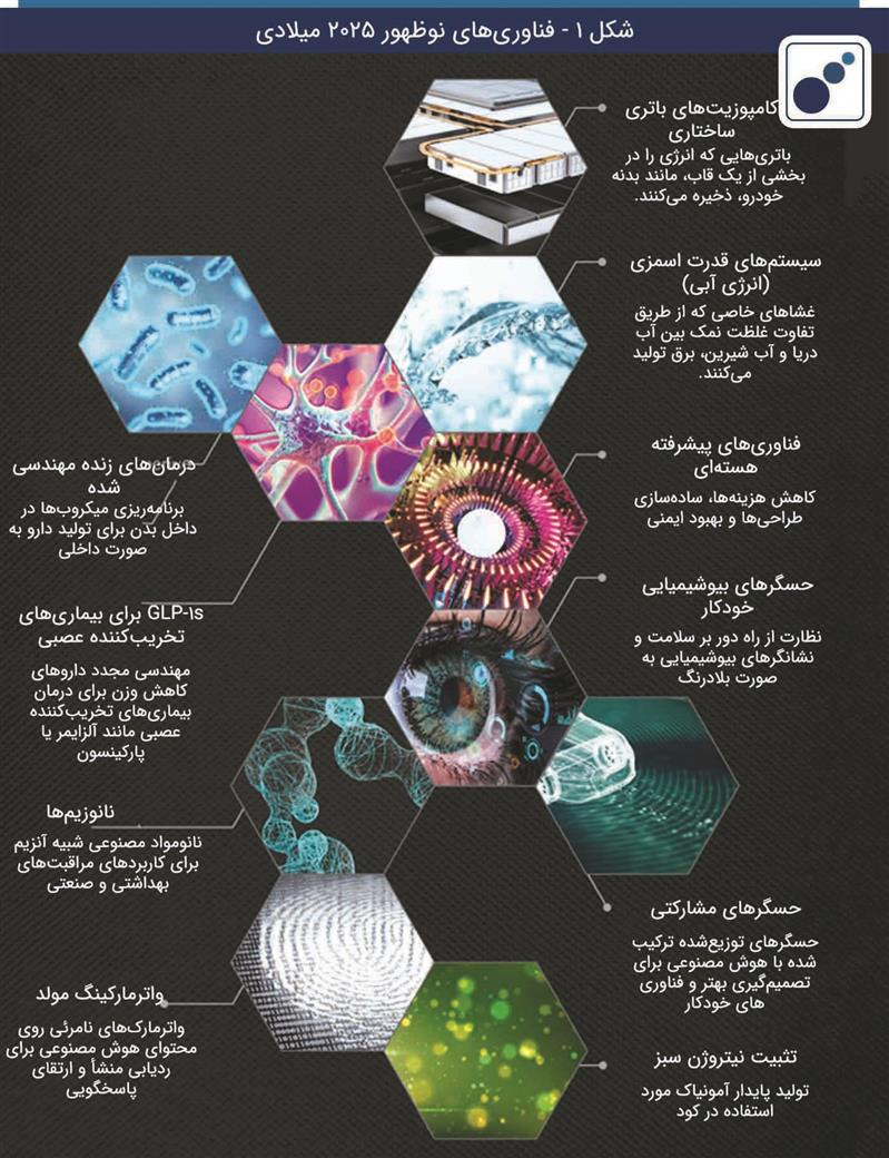 سال 2025 نویدبخش موجی بیسابقه از فناوریهای نوظهوری است که قرار است صنایع را دگرگون کند، قابلیتهای انسانی را ارتقا بخشد و به چالشهای جهانی پاسخ دهد. در صدر این تحولات، هوش مصنوعی (AI) با مدلهای مولد و چندوجهی خود که متن، تصویر، صدا و ویدئو را یکپارچه میکنند، بهسرعت در حال پیشرفت است. این تکامل، تنها به بهبود فرایندهای موجود محدود نمیشود، بلکه محتواسازی، توسعه نرمافزار، آموزش شخصیسازیشده و دستیارهای مجازی را متحول خواهد کرد و هوش مصنوعی را قابلتوضیحتر و در محصولات روزمره تعبیهشدهتر میسازد؛ این بدین معناست که ما شاهد ظهور برخی سیستمهای هوش مصنوعی خواهیم بود که نهتنها قادر به انجام وظایف پیچیدهاند، بلکه میتوانند تصمیمات خود را نیز برای کاربران توضیح دهند و اعتمادپذیری آنها را افزایش دهند. این شفافیت، بهویژه در حوزههای حساسی مانند پزشکی و حقوق، اهمیت بسزایی دارد. شکل ۱ فناوریهای برتر ۲۰۲۵ میلادی را به تصویر کشیده است.