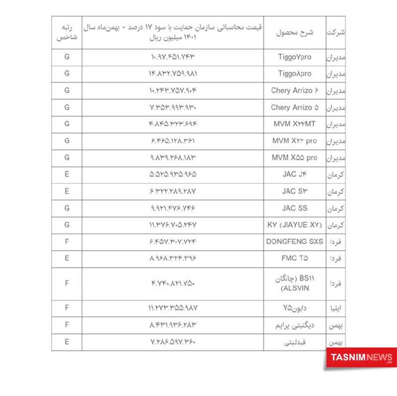 به گزارش نجوا خبر، قیمتهای پیشنهادی سازمان حمایت برای خودروهای مونتاژی که طبق دستورالعمل شورای رقابت تعیین شده است، تصویب شد. قیمت ۱۷ خودروی مونتاژی با سود ۱۷ درصد مشخص شده که بدین شرح است: